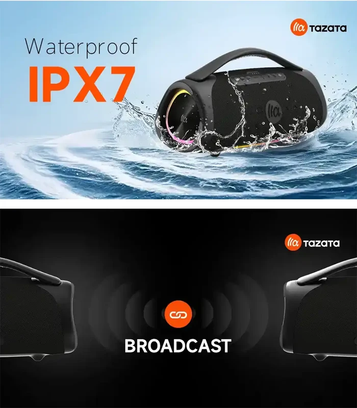 اگر به دنبال یک اسپیکر قابل حمل با صدای فوق العاده قدرتمند، بیس عمیق، نورپردازی جذاب و امکانات متنوع برای مهمانی ها و دورهمی های خود هستید اسپیکر تازاتا BOOMBLAST MAX با ویژگی های منحصر به فرد خود، تجربه شنیداری بی نظیری را برای شما به ارمغان می آورد. این اسپیکر با طراحی مدرن و وزن مناسب، به راحتی قابل حمل است و می توانید آن را در هر مکانی همراه خود داشته باشید.این اسپییکر در مدل طوسی و مشکی طوسی میکروفون دار و مشکی میکروفون نیز موجود است.