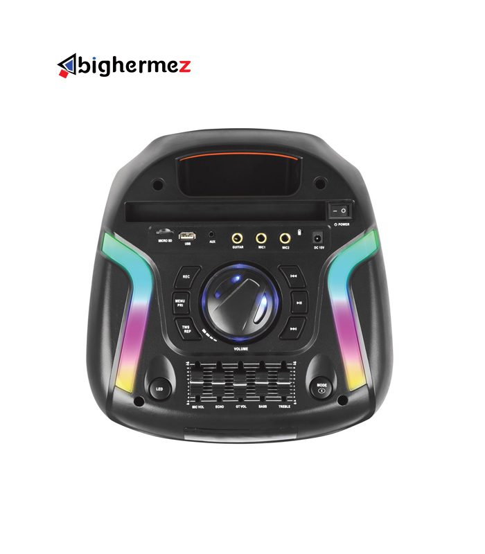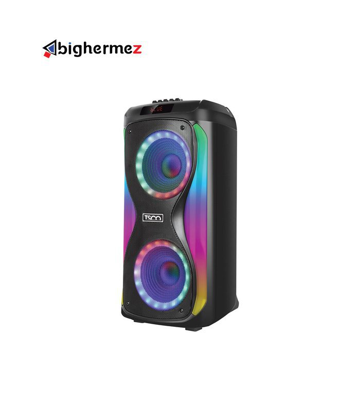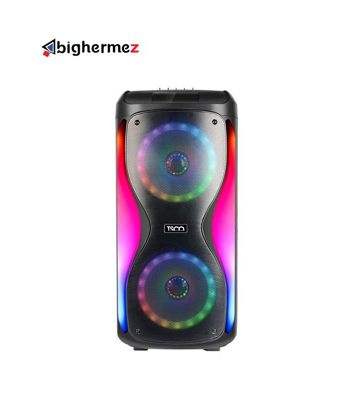 مشخصات ظاهری اسپیکر بلوتوثی تسکو مدل TS 1917 در بخش طراحی ظاهری این اسپیکر یکی از نکاتی که خیلی جلب توجه میکند نورپردازی RGB و جذاب آن است. با این طراحی شما میتوانید از فضاسازی آن لذت برده و حس و حال بهتری به اتاق خود ببخشید. اسپیکر بلوتوثی تسکو مدل 1917TS از یک پورت USB، 2ورودی میکروفن و درگاه AUX پشتیبانی میکند. این محصول از لحاظ ظاهری بسیار جذاب و بروز بوده و به رنگ مشکی به بازار عرضه شده است. یکی از روشهای اتصال جالب برای این دستگاه TWS است که با استفاده از این قابلیت میتوانید دو اسپیکر را به صورت همزمان به دستگاه متصل کنید تا امکان صدای کانال چپ و راست را با هم فراهم کنید. همچنین استفاده از TF Card یا micro SD نیز برای این دستگاه فراهم است. شما برای اتصال به رادیو نیز محدودیتی نخواهید داشت. ابعاد فیزیکی 1917 برابر 282x292x600 میلیمتر بوده که برای یک اسپیکر بلوتوثی با این حجم از صدا مناسب است. طراحی شیک و مدرن با کاربری راحت! وزن این اسپیکر 8 کیلوگرم بوده و با توجه بلوتوثی بودن آن مناسب به نظر میرسد. این اسپیکر بلوتوثی تا فاصله 10 متری قابلیت اتصال به دستگاه مورد نظر شما را داشته و شما میتوانید از طریق درگاه USB اسپیکر را شارژ کنید. در طراحی این اسپیکر در بخش بالایی دستگاه بخش تنظیمات اسپیکر قرار گرفته که شامل ورودی میکروفن، پورت AUX، یک درگاه USB و درگاه TF هست تا شما بتوانید به طرق مختلف موسیقی دلخواه خود را گوش دهید. در کنار اینها 4 دکمه برای پخش آهنگ و تغییر حالت پخش و همچنین عقب و جلو زدن آهنگ روی این اسپیکر تعبیه شده است. یک بخشی نیز برای زیاد و کم کردن صدا در نظر گرفته شده است. دکمهای جهت تغییر حالات نورپردازی روی اسپیکر TS 1917 قرار گرفته که جذابیت خاصی برای کاربر ایجاد میکند. با گرفتن دکمه مود بعد از 3 ثانیه نگه داشتن دکمه میتوانید از قطع شدن بلوتوث مطمئن شوید. شما از اسپیکر TS 1917 امکاناتی چون ورودی گیتار، ضبط صدا، کارائوکه، اکولایزر، اولویت میکروفون و اکو را دریافت میکنید. با استفاده از کلید کنترل تعبیه شده روی دستگاه میتوانید حالتهای مختلف ( میکروفون، گیتار، اکو، تریبل و بیس) را تنظیم کنید.