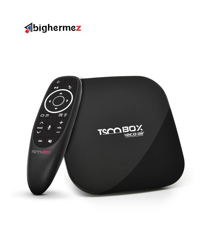 برای داشتن تجربه عالی از تماشای فیلم و بازی، اندروید باکسهای تسکو به کمک شما خواهند آمد تا نهایت لذت را از سرگرمی ببرید. تسکو باکس TAB ECO AIR، تکنولوژی جذابی است که تجربه تلویزیونی شما را به سطحی جدید ارتقا خواهد داد. همچنین این تسکو باکس قابلیت ارتباط به اینترنت و دستگاههای دیگر را داراست، بنابراین شما میتوانید تعاملی بیپایان را تجربه کنید. اگر شما هم از تماشای برنامهها، فیلمها، بازیها و محتوای دیجیتال لذت میبرید، اندروید باکس به شما امکان میدهد تا به سرگرمیها به آسانی و به سبکی مدرن دسترسی پیدا کنید. از اندروید باکس برای دسترسی به سایتهای بیشمار فیلم و موسیقی استفاده کرده و با خیال راحت فیلم و سریال مورد علاقه خود را در پلتفرمی بزرگتر مانند تلویزیون تماشا کنید. شما میتوانید با ایرماوس مخصوص TAB ECO AIR خیلی راحت به محتواهای مورد علاقه خود دسترسی پیدا کنید. از بازیهای آنلاین گرفته تا مشاهده ویدئوهای محبوب در شبکههای اجتماعی، اندروید باکس به شما توانایی انجام همه این کارها را در تلویزیون خواهد داد. ما در این بررسی قصد داریم شما را به دنیای جذاب تسکو باکس بیاوریم و به شما نشان دهیم که چگونه این دستگاه به شما امکان میدهد تا تجربه تلویزیونی شگفتانگیزتری را تجربه کنید. بیشک، با تسکو باکس TAB ECO AIR، تلویزیون شما به دریچهای جدید به دنیای تفریح و سرگرمی اینترنتی تبدیل خواهد شد. تسکو باکس جذاب تسکو با ابعاد حدود 115×115×20 میلیمتر به رنگ مشکی به بازار عرضه شده و با ریموت کنترل اختصاصی تجربه دیدن سرگرمی و بازی را بسیار آسان و لذتبخش میکند. برای اتصال به میکروفون میتوانید از طریق درگاه AUX اقدام کرده و از درگاه HDMI جهت اتصال به تلویزیون استفاده کنید. این دستگاه از ماوس و کیبورد با ورژن 2.4GHz و ماوس کیبورد وایرلس همراه با دانگل USB با نسخه 2.4 GHz نیز پشتیبانی میکند. همچنین تسکو باکس TAB ECO AIR در بخش کارت ریدر از پروفایلهای SD، SDHC و MMC پشتیبانی میکند. 2 عدد درگاه USB 2 با سرعت بالا در این تسکوباکس برای کارکرد بهتر خواهد بود.