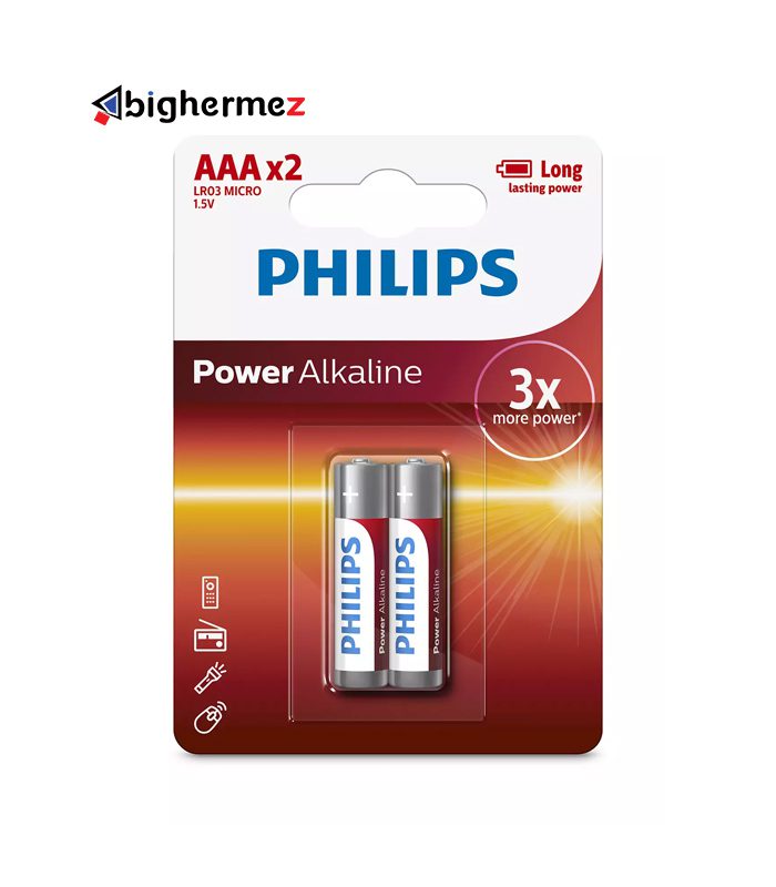 باتری نیم قلم 2تایی پاور آلکالاین فیلیپس مدل LR03P2B/97