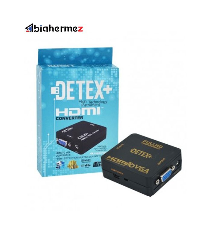 تبدیل HDMI به VGA مدل +Detex یک مبدل کارآمد برای اتصال کنسول های PS4 ،XBOX، دستگاه های DVR و گیرنده های دیجیتال و … به انواع تلویزیون های LED/LCD، لپتاپ ها و ویدئو پروژکتور ها دارای درگاه VGA مناسب برای ویدئو کنفرانس ها،کلاس های درس میباشد.