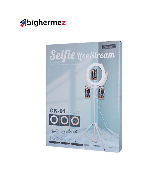 رینگ لایت ریمکس مدل CK-01، یک ابزار کارآمد و پر استفاده است. قطر بیرونی حلقه این رینگ لایت 30سانتیمتر است که نور را به خوبی منتشر میکند. این رینگ لایت دارای سه هولدر منعطف برای گوشی موبایل و پاوربانک می باشد. از دیگر نکات این رینگ لایت باید به سه نور 3 رنگ نور (زرد آفتابی-سفید مهتابی-ترکیبی) اشاره کرد که برای انواع عکس یا فیلم مورد استفاده قرار میگیرد.