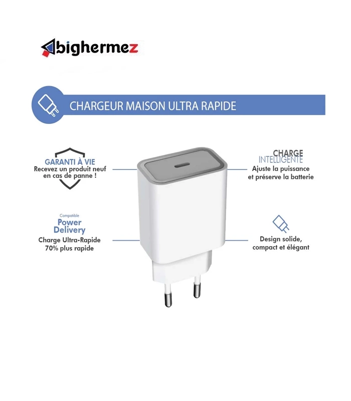 این شارژر امکان شارژ فوقالعاده سریع با فناوری Power Delivery را فراهم کرده است. فناوری Power Delivery سرعت شارژ بسیار بالاتری نسبت به پروتکلهای شارژ دیگر دارد. پورت USB-C این شارژ، حداکثر توان 25 وات را فراهم میکند تا دستگاهها 70 درصد سریعتر از فناوری معمولی 5 وات شارژ شوند. دیگر نیاز به داشتن چند شارژر نخواهید داشت: با این شارژر میتوانید تمامی نیازهای خود را پوشش دهید. این شارژر گزینهای قدرتمند برای تامین انرژی همه دستگاههای iOS (اپل) و اندروید (گوگل، سامسونگ، شیائومی، اوپو…) محسوب میشود. کاربر میتواند شارژ صفر تا 50 درصد دستگاه پرچمدار خود را در کمتر از 30 دقیقه انجام دهد. این شارژر به طور خودکار جریان مورد نیاز برای شارژ سریع را تشخیص میدهد. همچنین، این فناوری جدید از خطر گرم شدن بیش از حد جلوگیری میکند و عمر باتری را افزایش میدهد. به علاوه هنگامی که باتری پر شد، منبع تغذیه خاموش می شود تا از فشار اضافه به باتری جلوگیری کند. برای بهرهمندی از سرعت شارژ بهینه شارژر Power Delivery، به یک دستگاه سازگار با این فناوری و یک کابل شارژ مناسب نیاز دارید. روکش فلزی این محصول به زیبایی و جذابیت آن افزوده است.