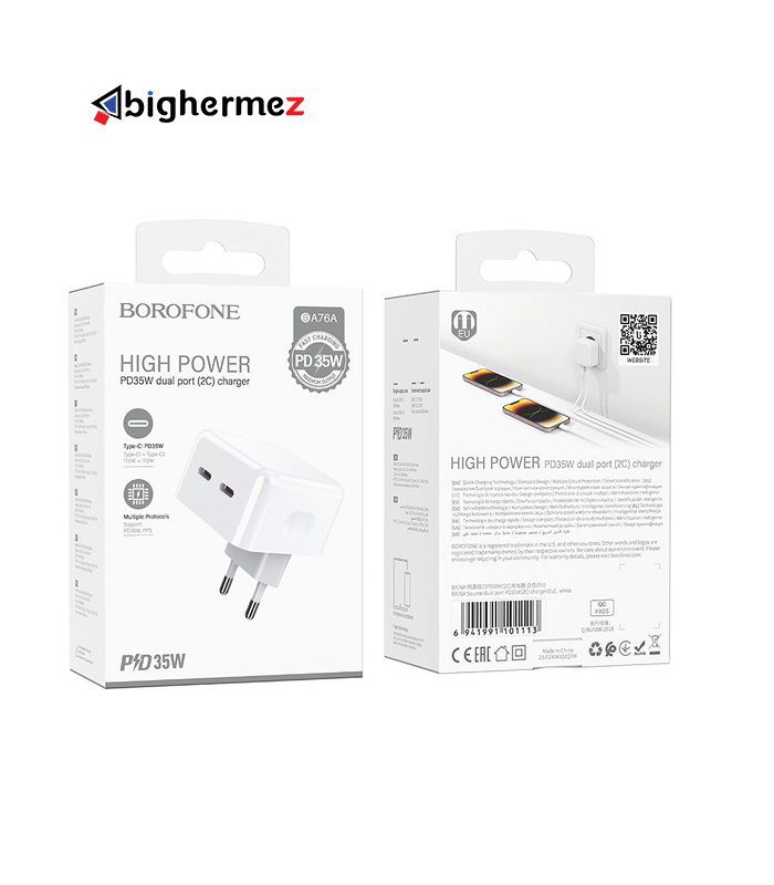 شارژر دیواری 35W بروفون مدل BA76A USB PD (EU)