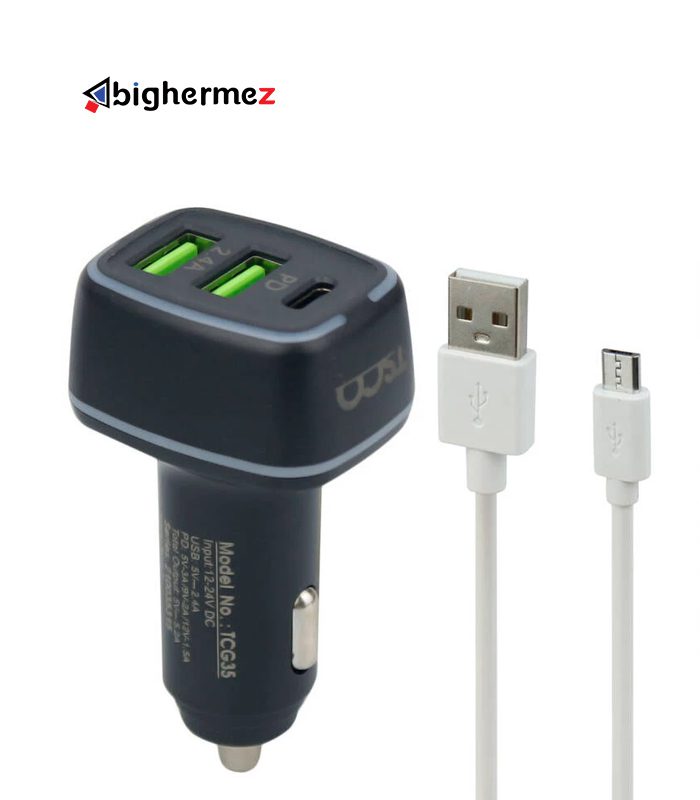 شارژر فندکی تسکو مدل TCG35 به همراه کابل تبدیل MicroUSB