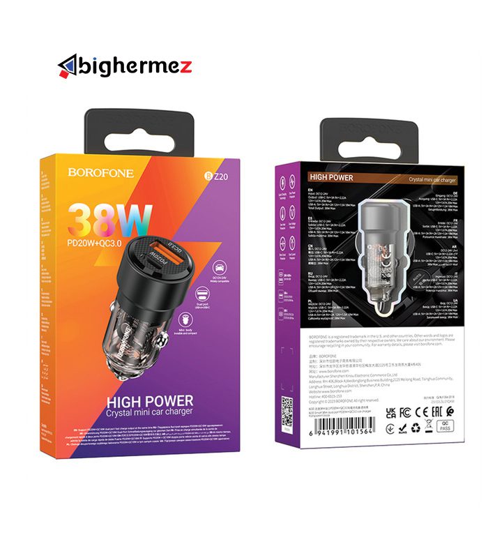 شارژر فندکی USB:QC3.0+Type-C 38W بروفون مدل BZ20