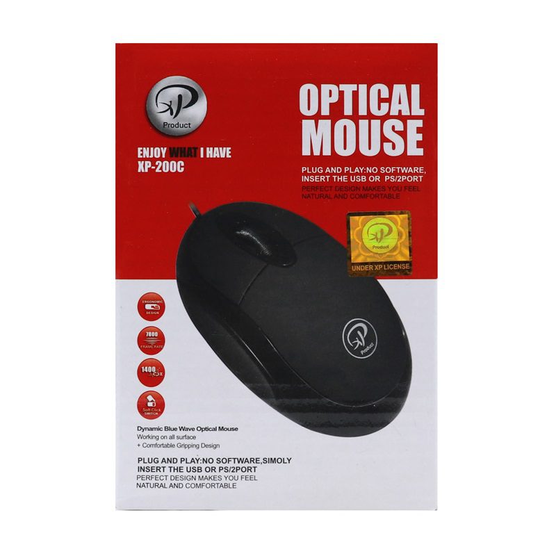 • ماوس ایکس پی-پروداکت مدل XP-200 با سه کلید و بسیار ساده طراحی می شود. و برای امور روزانه در محل کار یا منزل انتخاب مناسبی است. طراحی ارگونومیک این ماوس مانع از خستگی و درد دستتان خواهد شد. نوع حسگر آن اپتیکال و دقت آن 1400dpi می باشد.