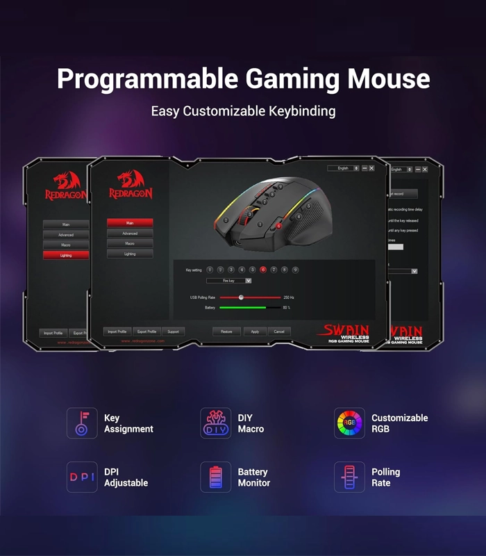 ماوس باسیم/بیسیم مخصوص بازی ردراگون مدل SWAIN M915 RGB-WL