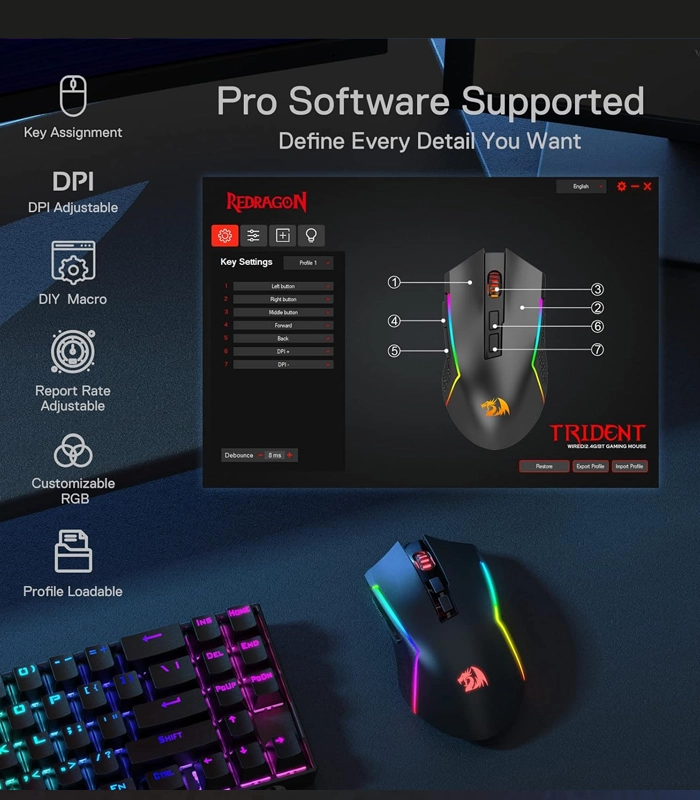 ماوس بی سیم گیمینگ ردراگون Griffin M602-KS یکی از مدلهای قدرتمند و ارگونومیک این برند است که برای گیمرهای حرفهای و کاربران علاقهمند به تجهیزات باکیفیت طراحی شده است. این ماوس اتصال بیسیم با تأخیر کم، سنسور اپتیکال پیشرفته، نورپردازی RGB و طراحی ارگونومیک را ارائه میدهد و یک انتخاب عالی برای بازیهای سریع و رقابتی محسوب میشود. اگر به دنبال یک ماوس با دقت بالا، باتری قوی و قابلیتهای تنظیم پیشرفته هستید، Griffin M602-KS یک گزینه ایدهآل خواهد بود.