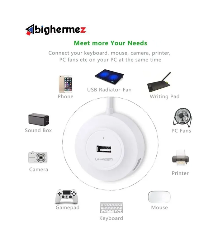 - هاب 4 پورت USB 2.0 یوگرین مدل CR106-20270 دارای 4 پورت Type-A و یک پورت Micro-USB برای تامین برق