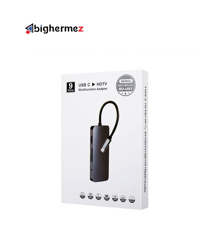 هاب 9 پورت TYPE-C ریمکس مدل RU-U91 از خوش ساخت ترین و پیشرفته ترین هاب های بازار است. که خود ریمکس لقب طراحی لاکچری فول متال به آن می دهد. این هاب توسط USB Type C به کامپیوتر و لپ تاپ وصل می شود. این هاب از متریال آلومینیومی تولید می شود.