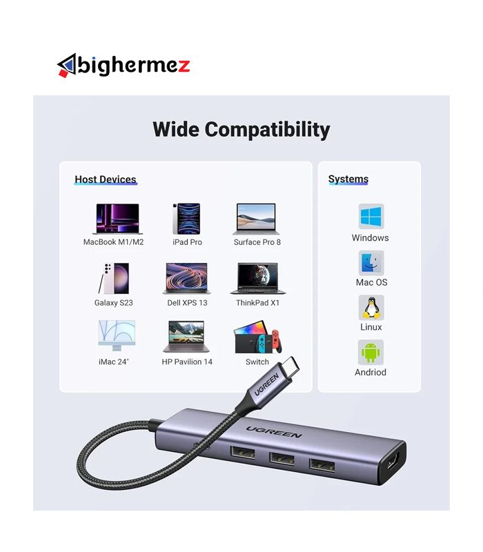 هاب TYPE-C یوگرین 5 پورت مدل CM511-15596