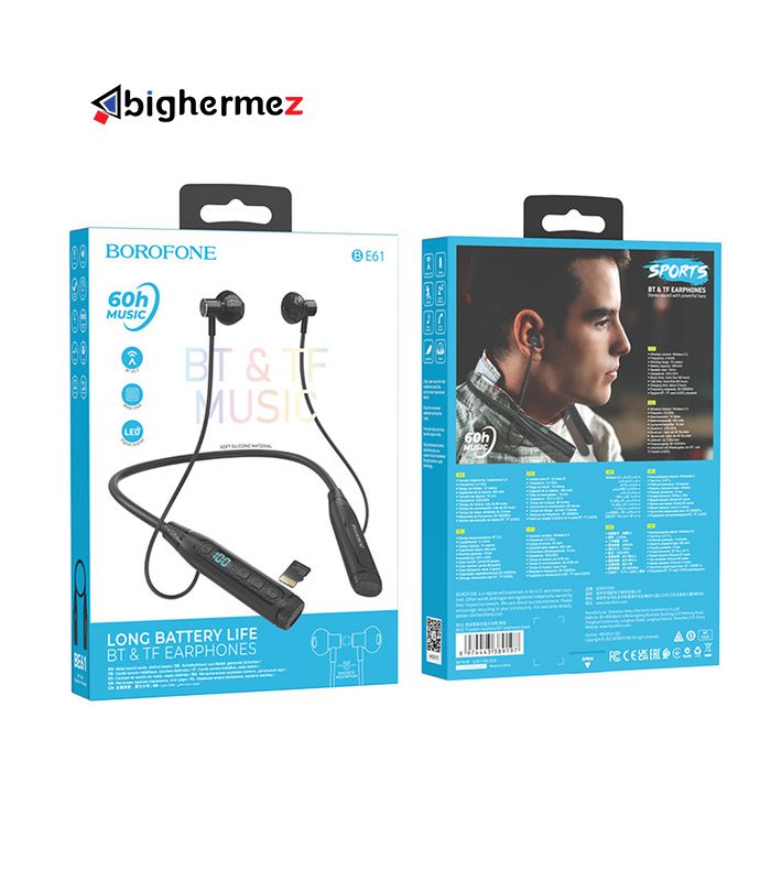 هندزفری بلوتوث دورگردنی بروفون مدل BE61 یکی از بهترین هدستهای موجود در بازار است. با استفاده از این محصول میتوانید تا 60 ساعت پخش موسیقی داشته باشید یا مکالمه کنید. پس از اتمام شارژ این دستگاه هوشمند نیز میتوانید این محصول را تنها طی ۳ ساعت 100% شارژ کنید. و اگر آن استفاده نکنید هم تا 800 ساعت بهصورت آماده به کار باقی میماند.