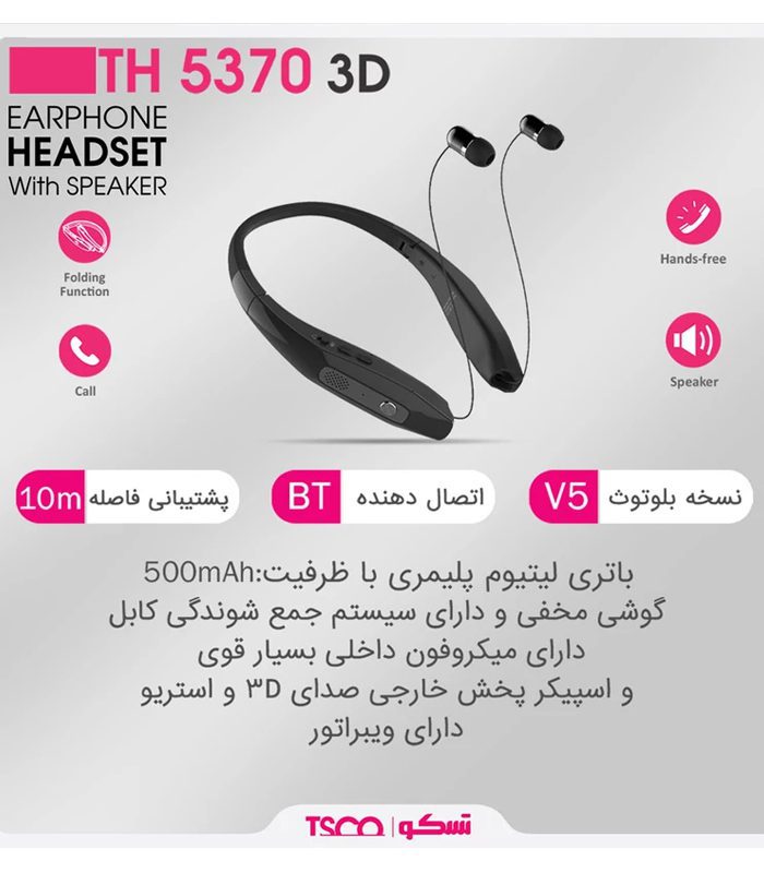 هندزفری دورگردنی تسکو مدل TH 5370 3D