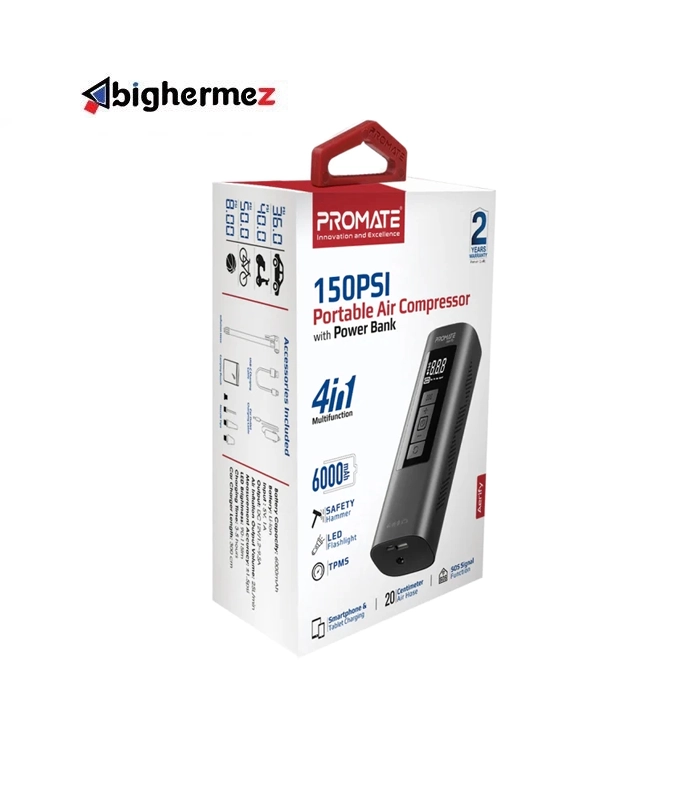 پاوربانک و کمپرسورهوا پرومیت Aerify مدل 150PSI ظرفیت 6000mAh