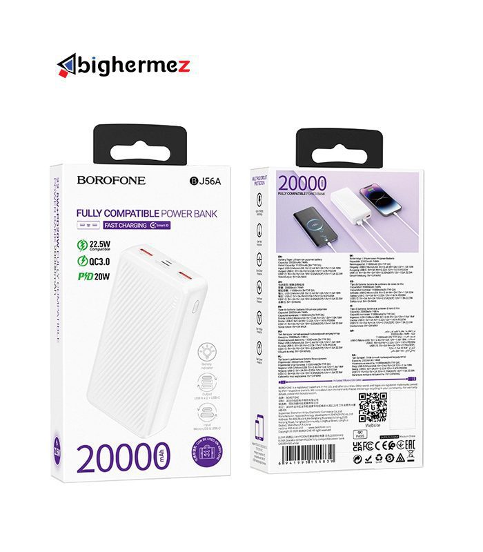 پاوربانک 20000mAh PD بروفون مدل BJ56A 22.5W