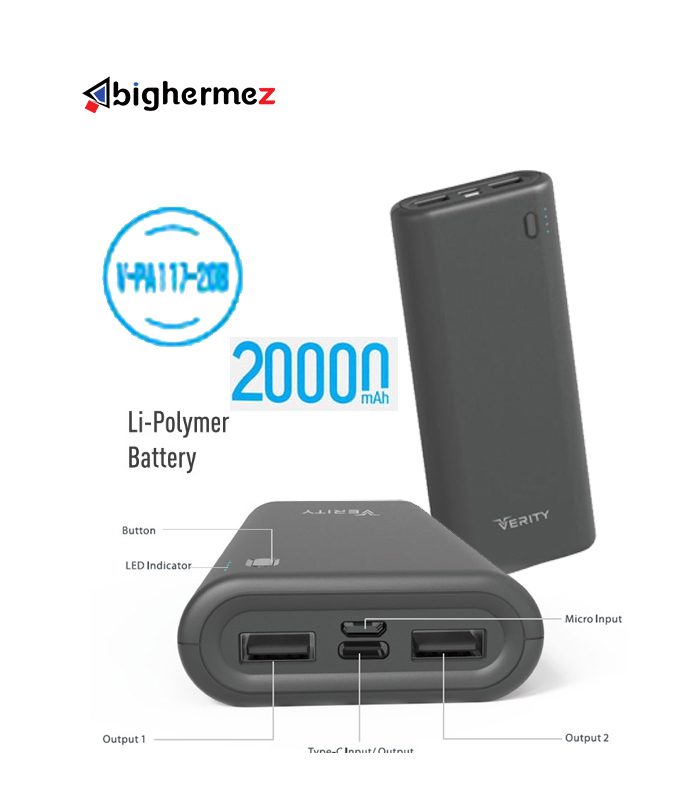 پاور بانک وریتی مدل V-PA-117-20B به ظرفیت 20000 MAH