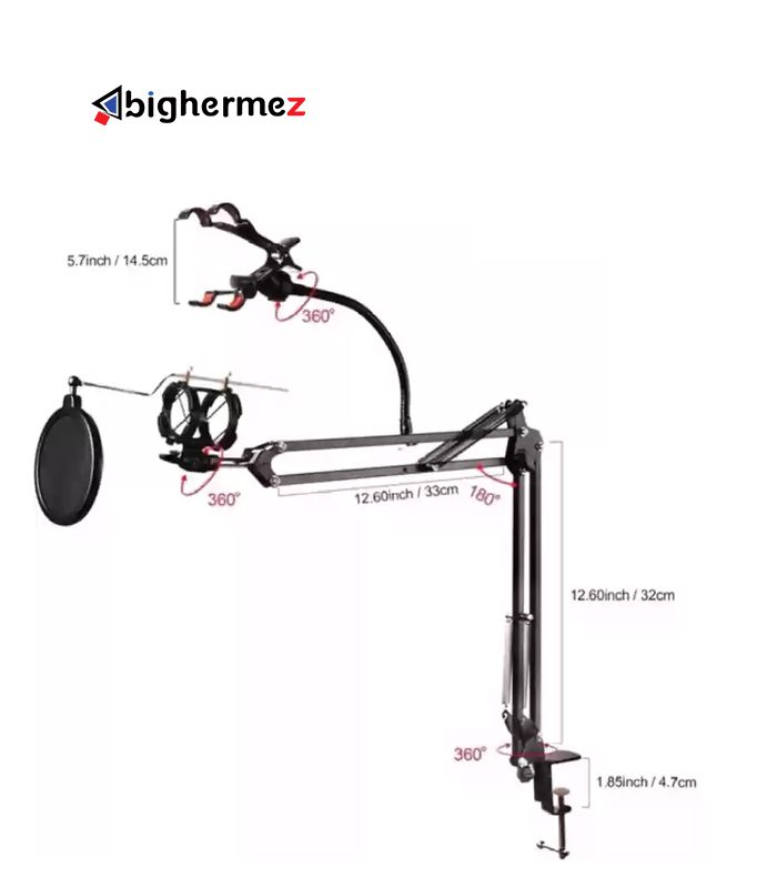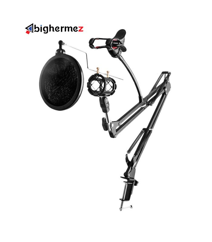 دارای پایه نگهدارنده گوشی و تبلت  است. که از 11 تا 18 سانتی متر توایی نگهداری انواع گوشی و بالاخص تبلت را دارد و توانایی چرخش 36.0 درجه بطور کامل را دارد. پایه بازویی قیچی مجهز به فنر فوق العاده قوی است. تا بتواند وزن زیادی را تحمل کند.دارای یک نویز گیر یا پاپ شیلد بوده که کاملا در برابر قطرات بخار دهان ضد باکتریال می باشد.