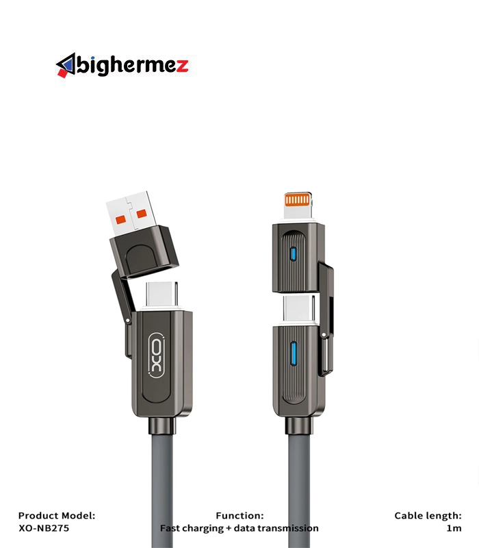 کابل شارژ چهار سر ایکس او مدل XO-NB275 طول 1 متر توان 60 وات