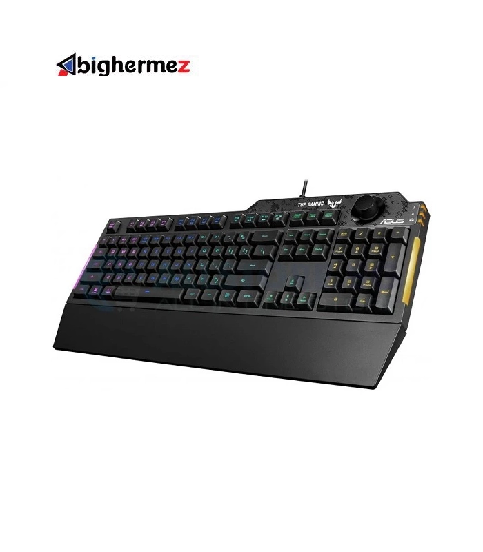 نورپردازی RGB در سراسر کیبورد و لایت بارهای کناری، پیچ ولوم اختصاصی و یک استراحتگاه مچ دست با قابلیت جداسازی، از جمله امکاناتی هستند که با تهیه کیبورد TUF K1 RGB، عاید شما خواهند شد.