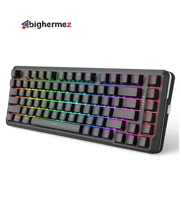 کیبورد K713 Pro با طراحی 82 کلید، ترکیبی هوشمندانه از کلیدهای ضروری و قابلیتهای کاربردی را ارائه میدهد. این طراحی ضمن حفظ کلیدهای F1-F12، کلیدهای جهت، و کلیدهای حذف و صفحه بعدی/قبلی، فضای کمتری را روی میز کار شما اشغال میکند.