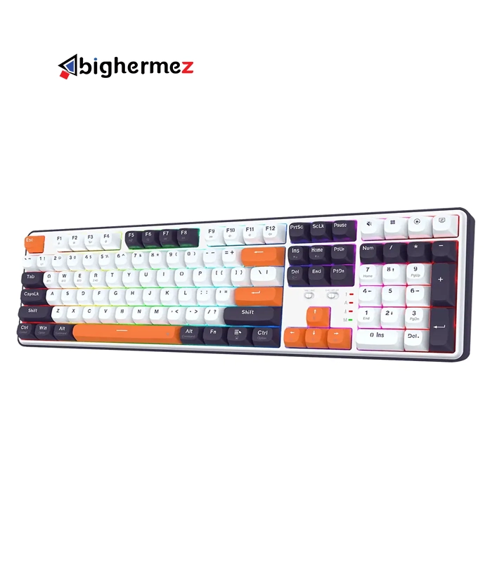 کیبورد K689 WBO PRO با طراحی 104 کلید، تمامی کلیدهای مورد نیاز شما را در اختیار شما قرار میدهد. این کیبورد دارای تمامی کلیدهای استاندارد، از جمله کلیدهای F1-F12، کلیدهای جهت، و صفحه کلید عددی است.